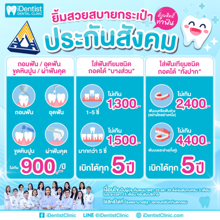 คลินิกทำฟันใกล้ฉัน รับประกันสังคม รักษาอะไรได้บ้าง?